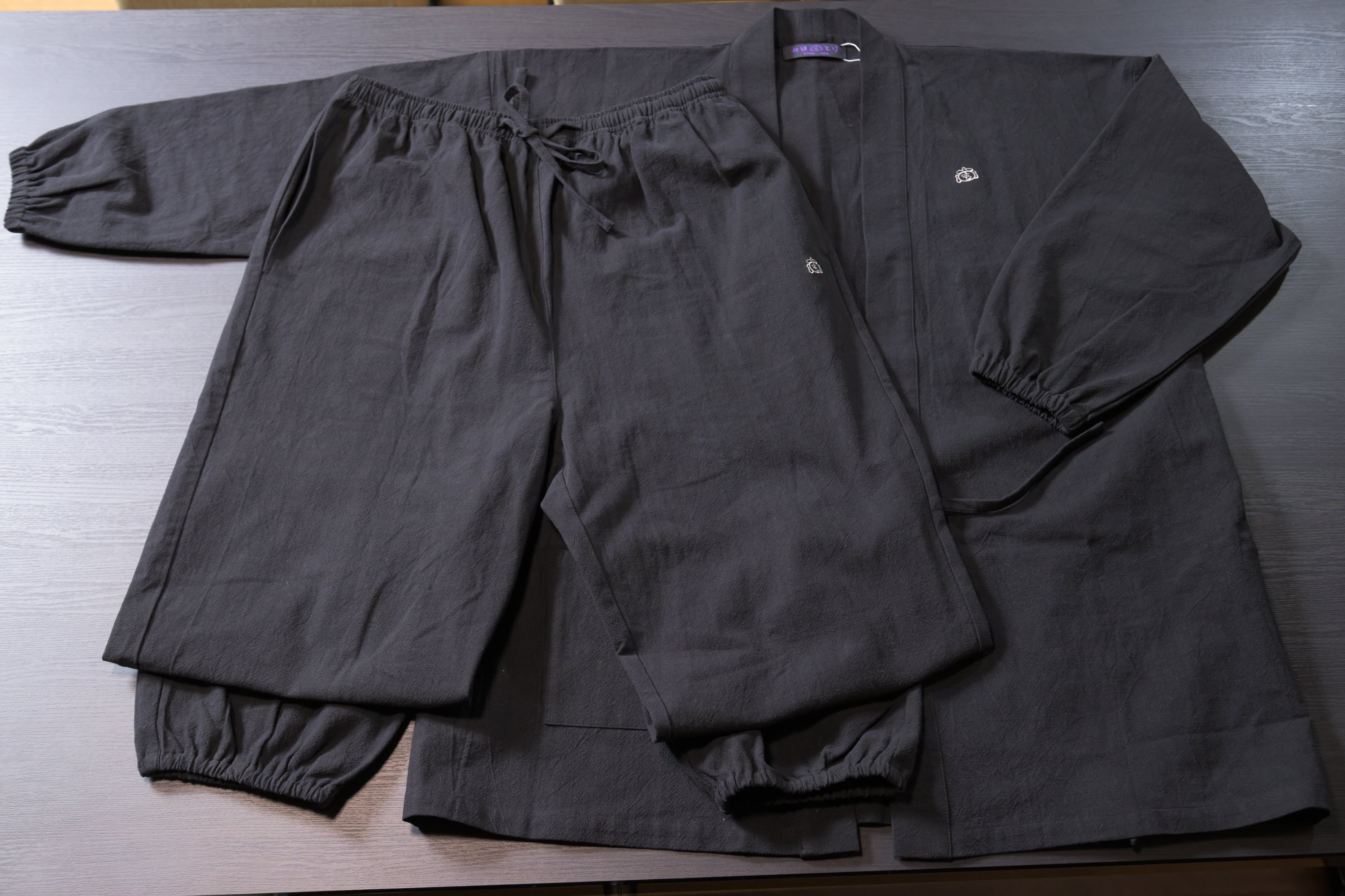 【長袖/中厚手】みほとけ作務衣 上下セット【墨黒 /M,L,XL】