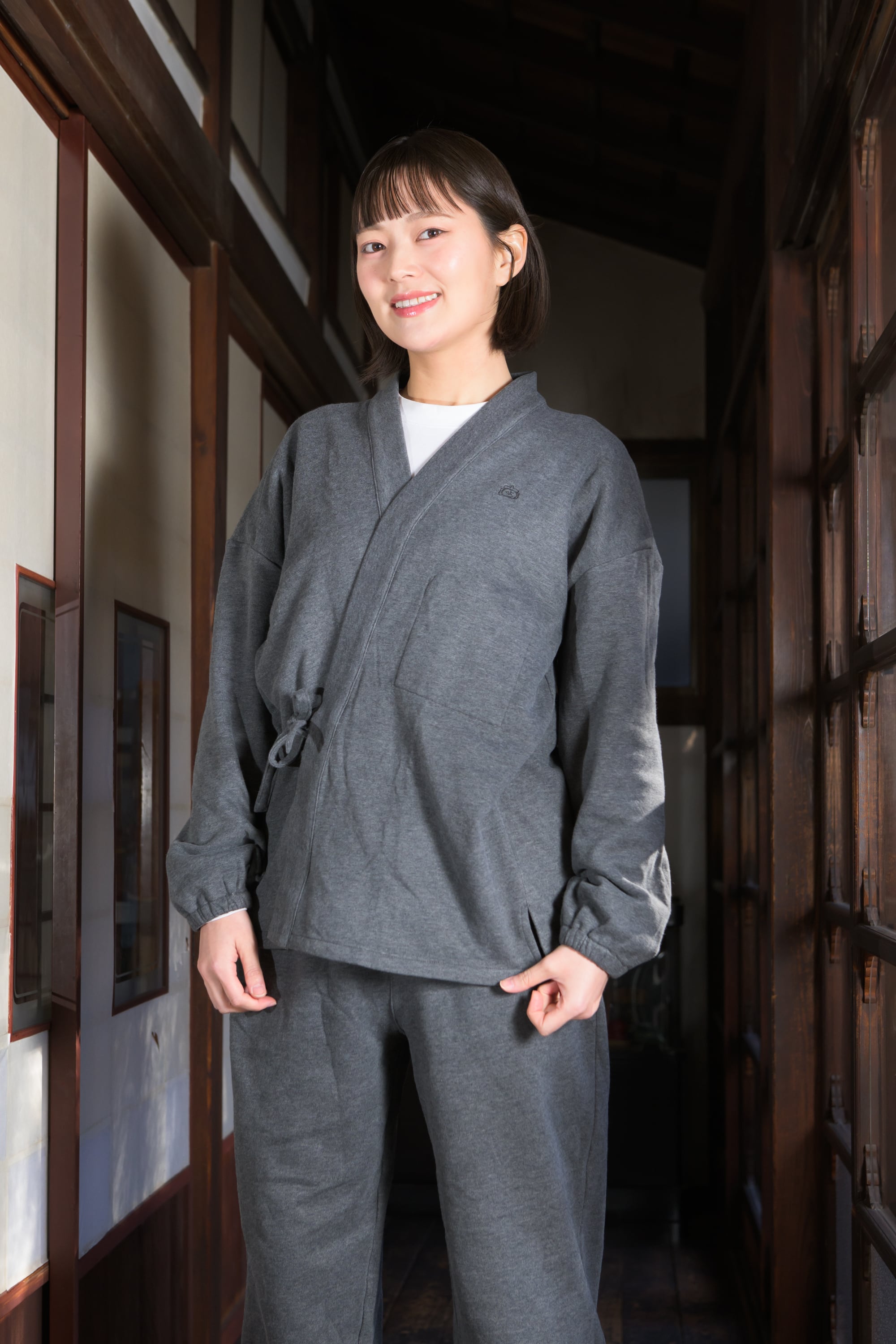 【長袖/スウェット】みほとけ作務衣 上下セット【灰(濃いグレー) /M,L,XL】