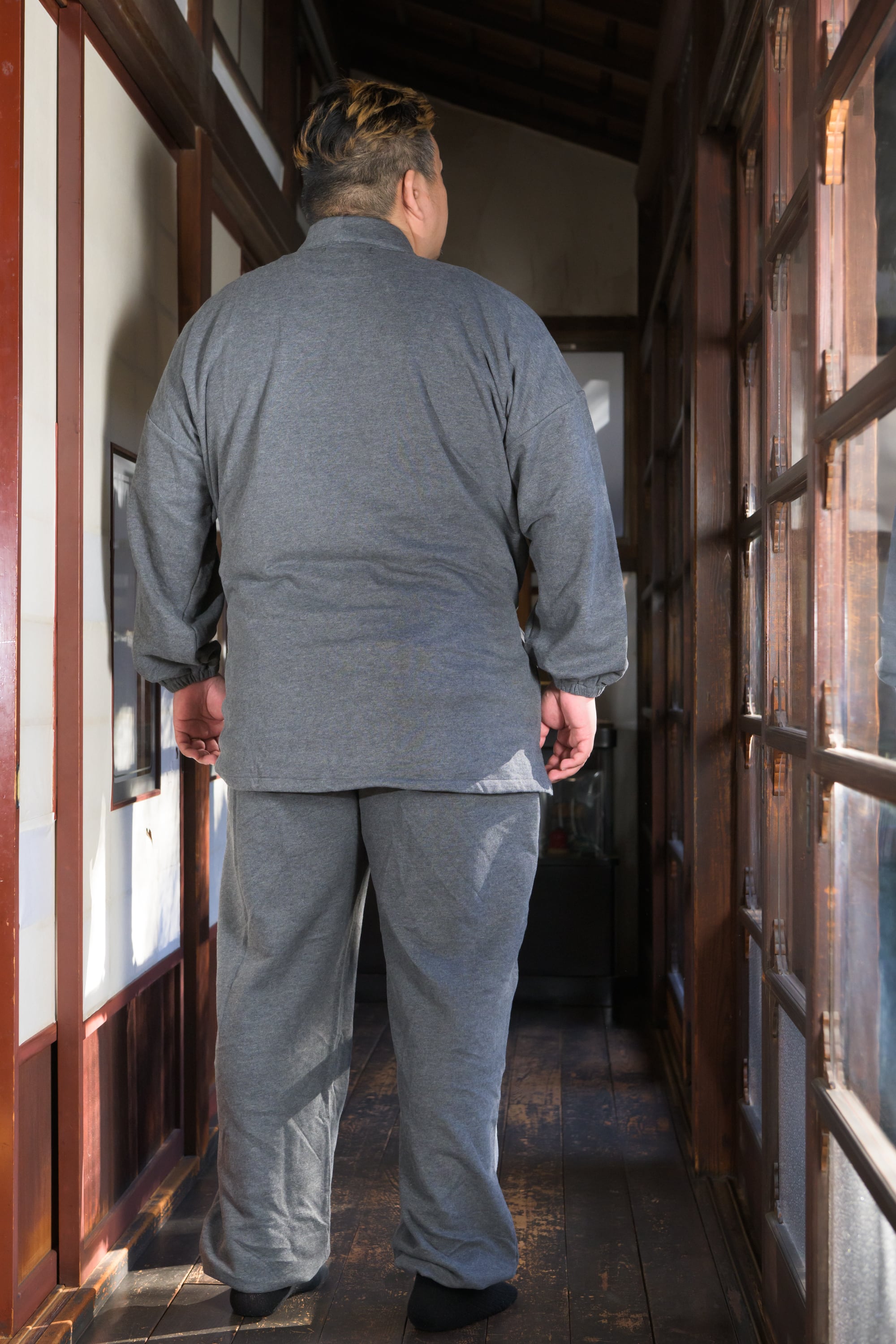 洋服のパーカーやトレーナーに用いるスウェット素材で作務衣を開発し、3年目に突入。