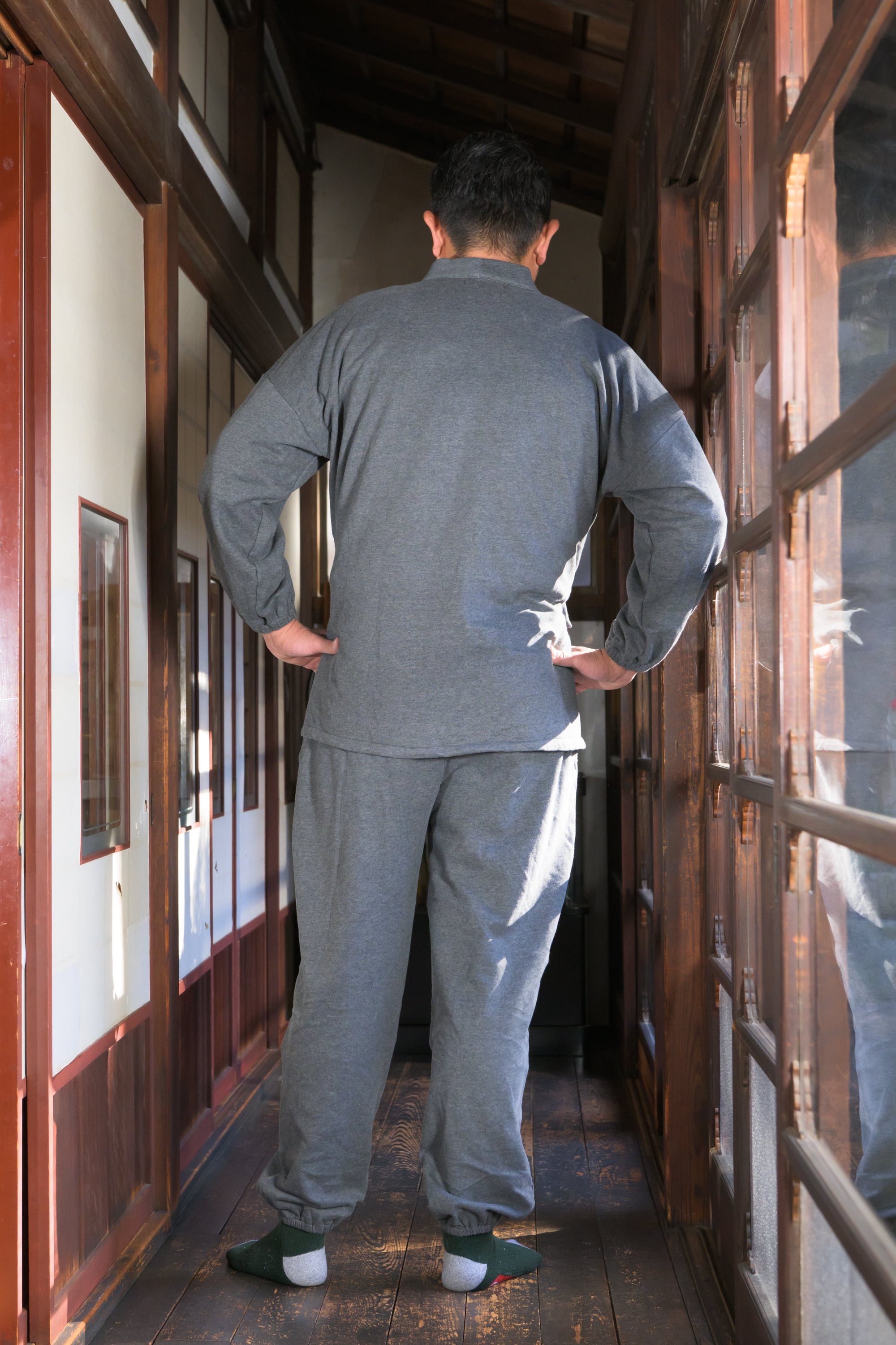 作務衣の常識を覆す目新しさだけに留まらず、スウェット素材は作務衣本来の目的である「作業時の動きやすさ、取り扱い易さ」の観点から最も適した素材の1つと言えます。