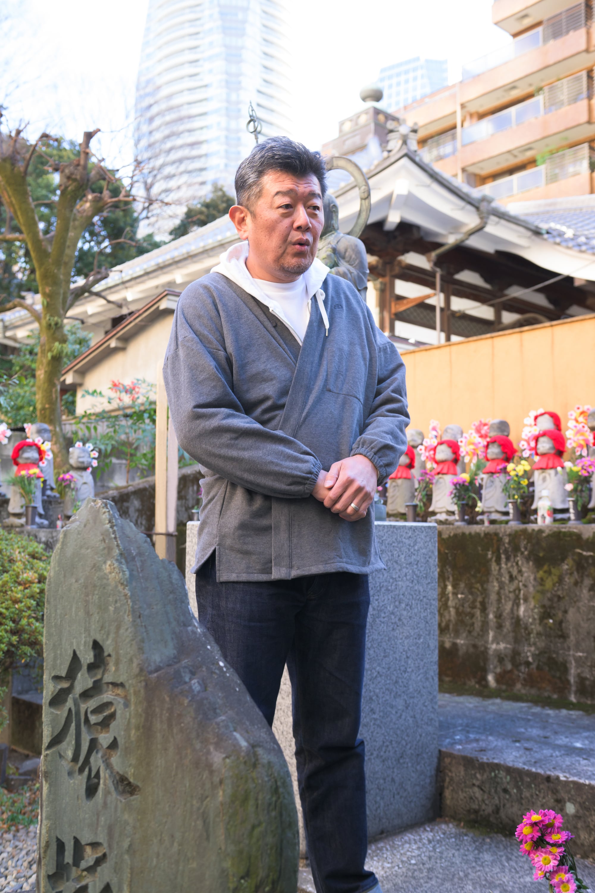 「デニムと相性がいいので、上着の作務衣は数色を着まわしたい」
