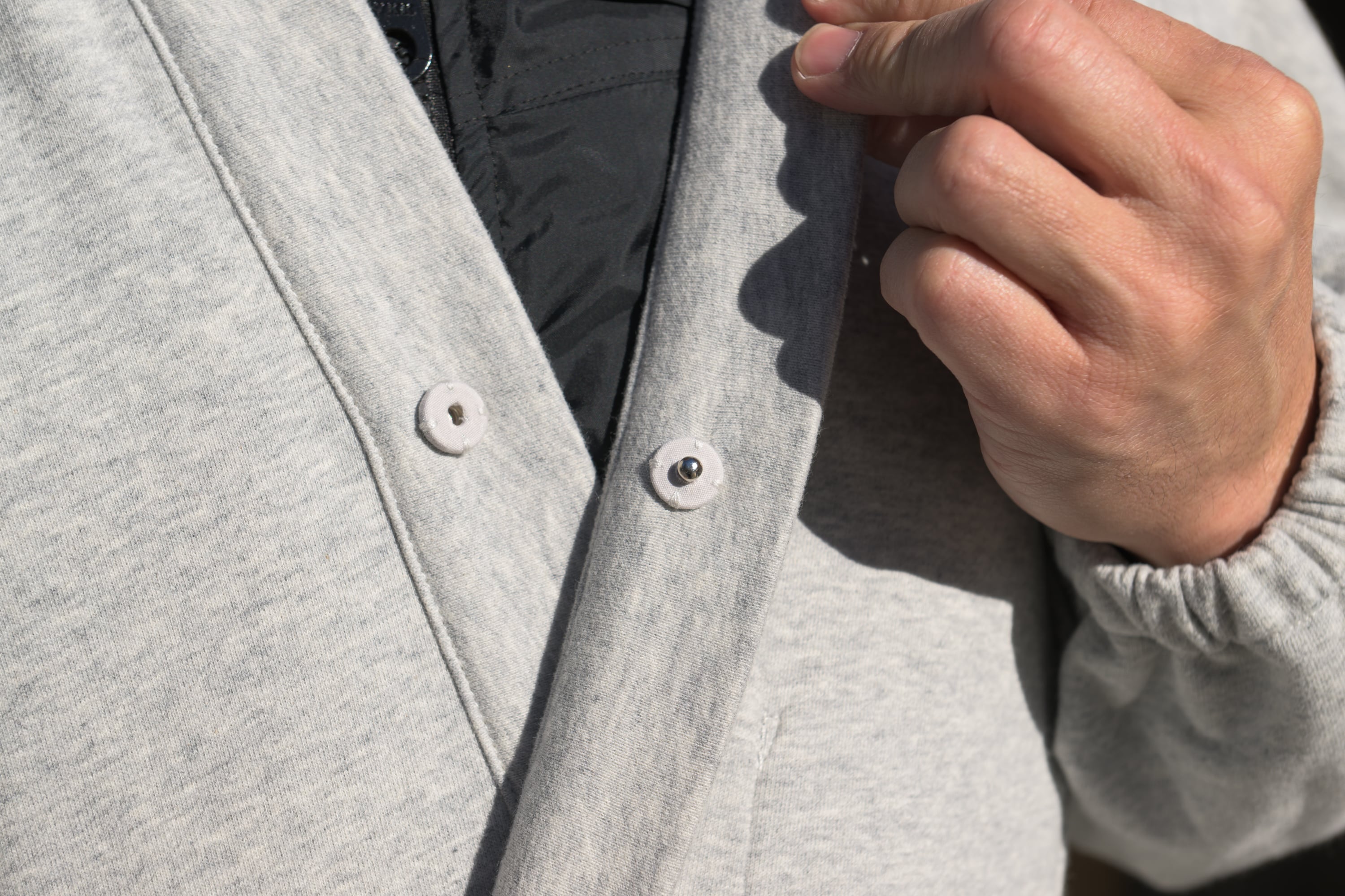 夏の薄手商品でご好評をいただいた、【胸元のスナップボタン】を、今作でも採用しました。