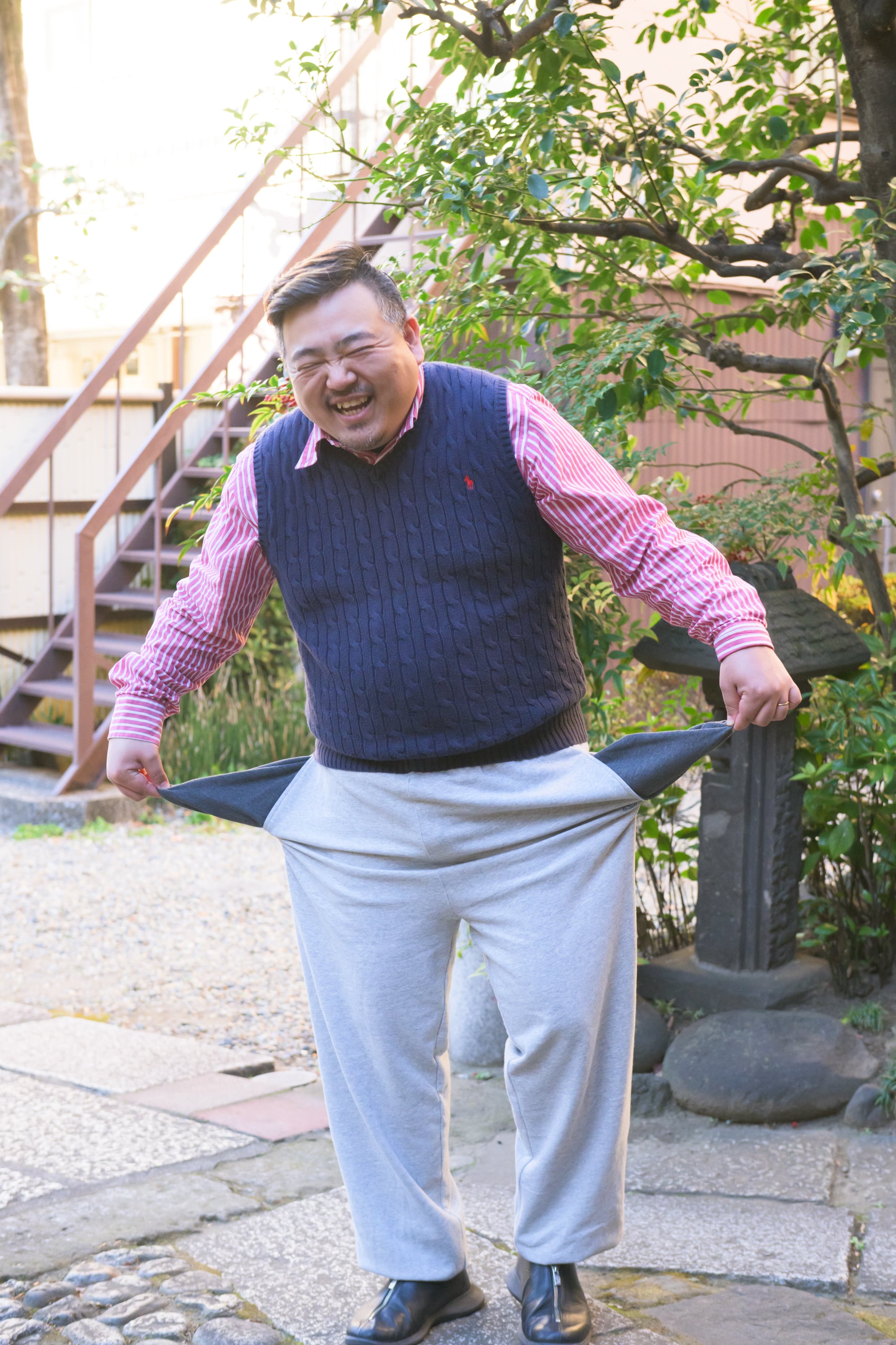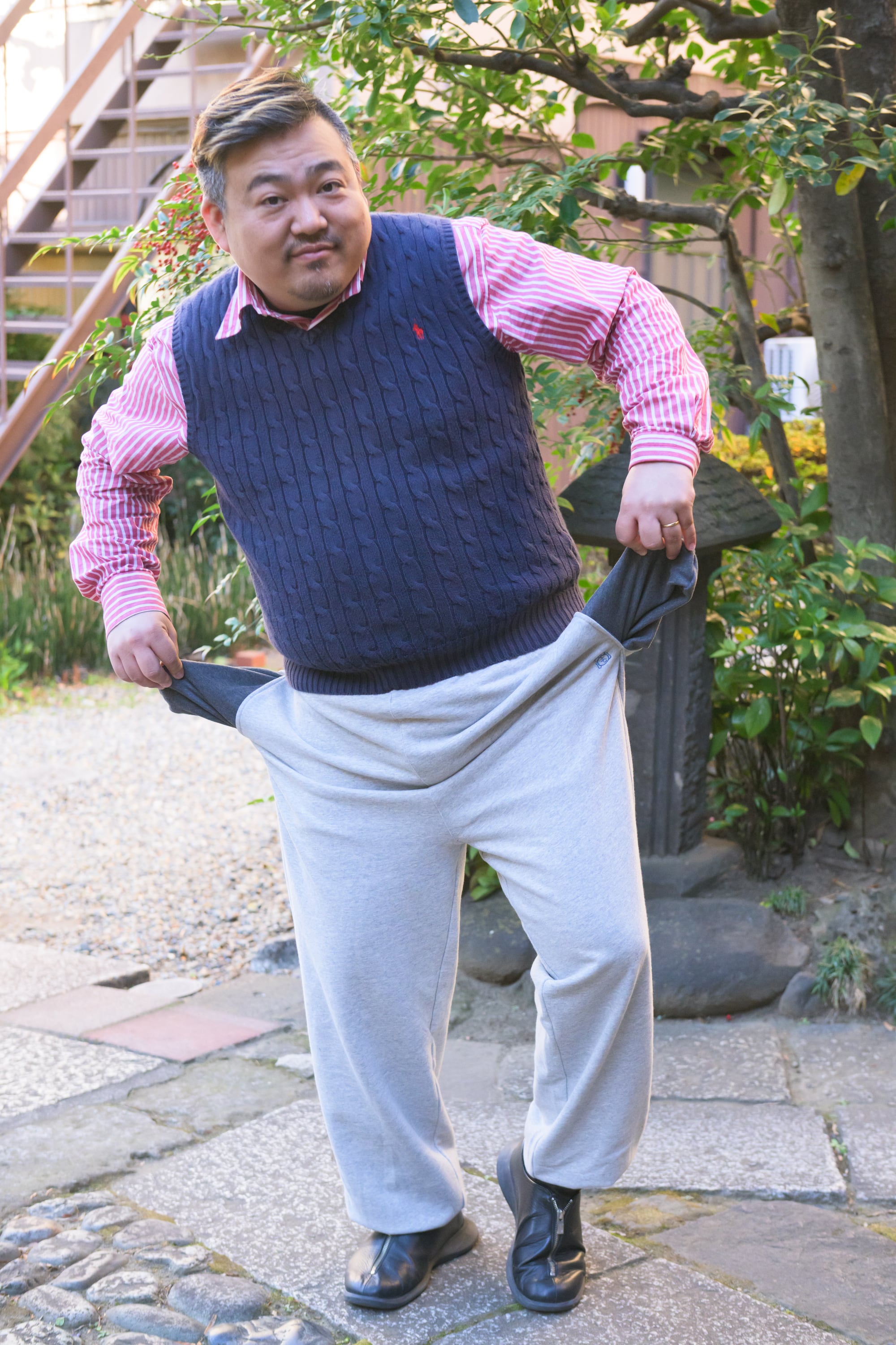 「デニムと相性がいいので、上着の作務衣は数色を着まわしたい」
