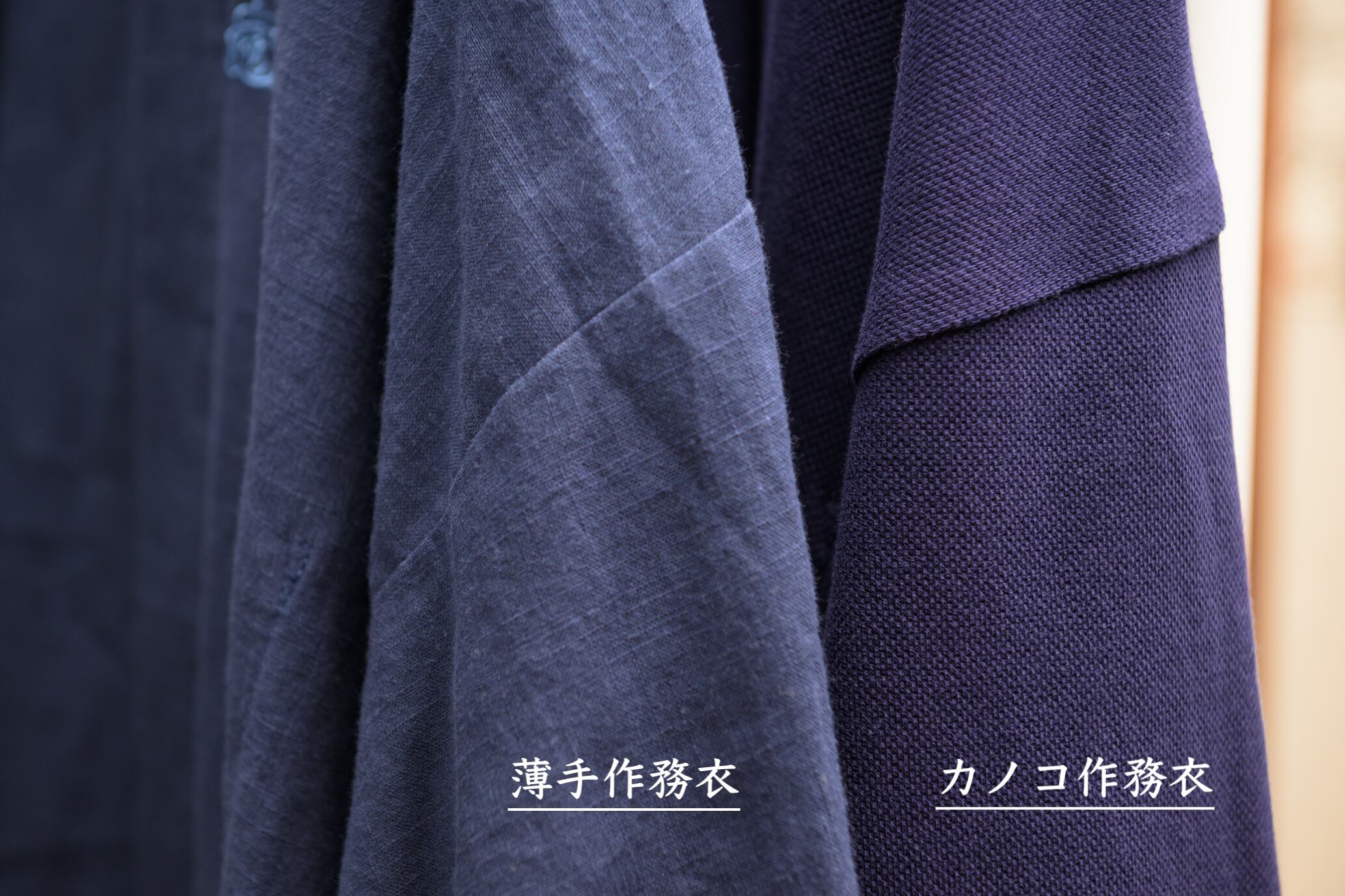 さらに袖と裾の折り返し部分と腰紐に色を足して「ちら見せ配色」という、みほとけ作務衣店ならではの遊びを取り入れました。